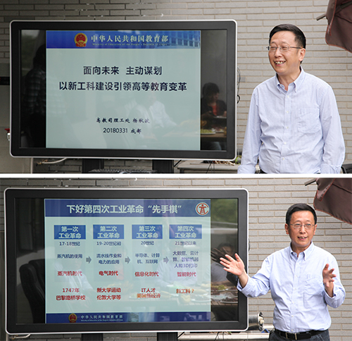 他提出,学院在“新工科”建设中会遇到“新挑战”和“新机遇”,需紧密结合“双一流”建设和机械大类培养政策,进一步加强新兴专业布局、传统专业升级和学科交叉融合,进一步深入推进教学模式改革、完善质量保障体系等。同时结合“测控技术课程”和“机电产品创新设计理论与实践”两门课程,展示了在教学过程中的新视域,得到与会教师的热烈反响。