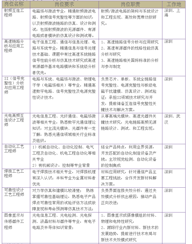 电磁场与微波,信号与信息处理,通信与信息系统,电路与系统,微电子学,光学工程;电气工程及其自动化、机械设计,机械自动化,焊接,力学,材料,光电等相关专业;