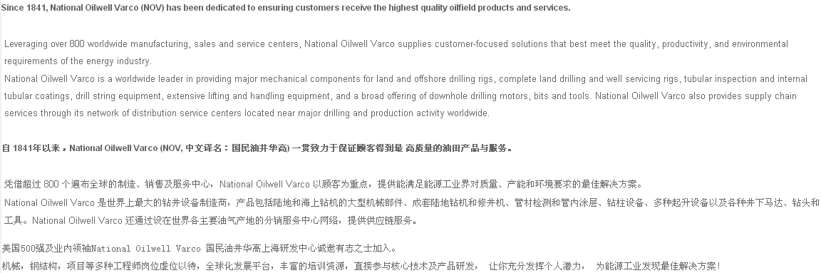 请发简历至人力资源部马小姐信箱:jing.ma2@nov.com