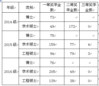 3、学校研究生院分配学院各年级各类研究生学业奖学金金额,学院据此分配相应的各等级奖学金数量。但各年级各类研究生的奖学金金额之间不能打通使用。