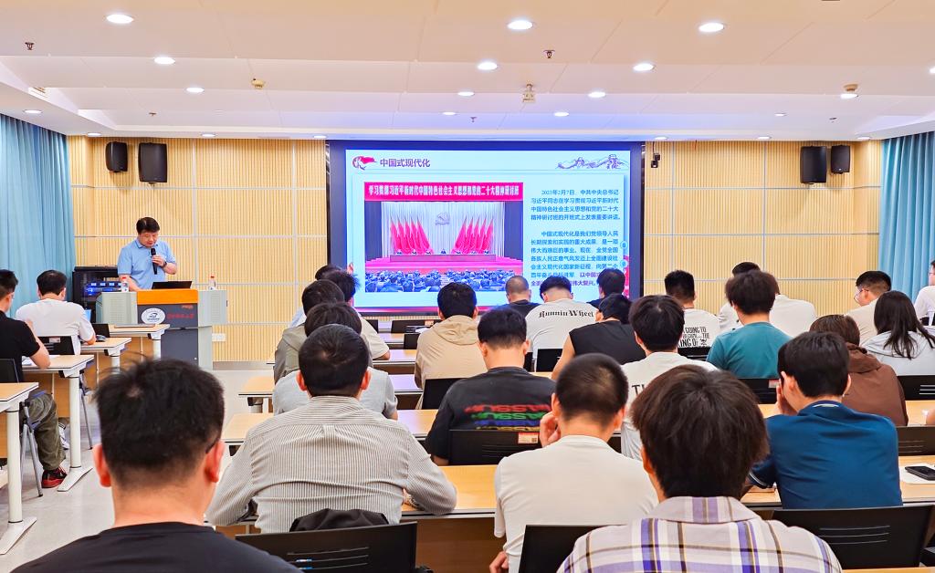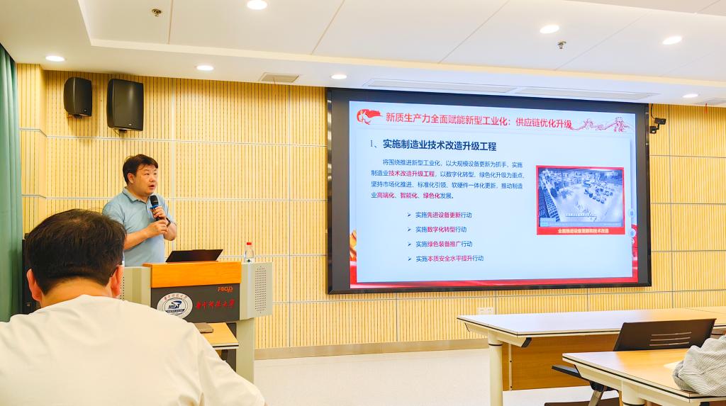 为深入学习贯彻习近平新时代中国特色社会主义思想,落实党员基本培训工作要求,激发广大学生投身建设制造强国事业热情,5月27日晚,我院副院长李新宇在机械大楼东楼A304会议室为研究生党支部讲授“新质生产力推动高质量发展”专题党课。制造装备数字化国家工程研究中心博士生第三党支部、2023级硕士生第四、第七党支部共70余名学生党员参加学习。