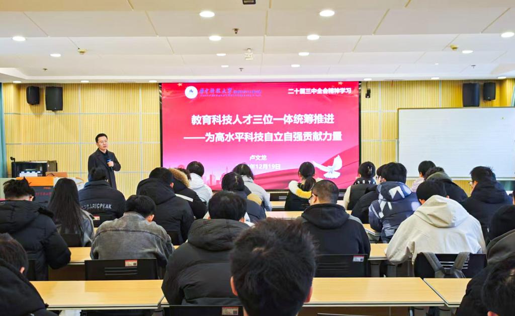 为深入学习贯彻党的二十届三中全会精神,12月19日上午,我院党委副书记卢文龙在机械大楼东楼A304会议室讲授“教育科技人才三位一体统筹推进——为高水平科技自立自强贡献力量”专题党课。仪器科学与技术系博士生党支部、2022级硕士生第二党支部、2023级硕士生第二党支部全体党员参加学习。