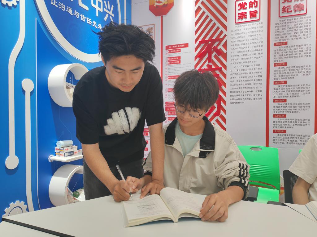 在低年级学弟学妹考试前夕,屈展池对接学院23级本科生为同学们做考前答疑辅导,传授自己的学习备考经验。经过辅导后,同学们纷纷表示对专业课复习的重难点更加明确,也会尽心尽力复习备考。