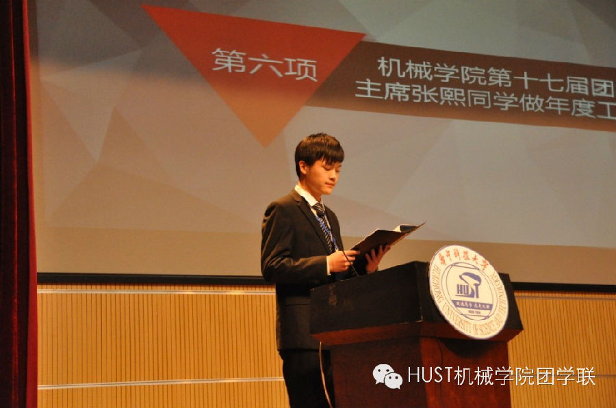 首先由学院党委副书记丁雨葵讲话,真挚地表达了对上一届主席团成员工作的肯定以及对即将诞生的新一届主席团的殷切寄望。接下来校团委副书记刘红军致辞,充分肯定了我院团学工作的丰富成果,并对以后工作提出更高的要求。校学生会主席陈家乐同学宣读了贺信,热烈祝贺我院学生会工作取得一系列可喜可贺的成绩。接下来我院第十七届团学联主席张熙同学做年度工作报告,全面回顾我院团学工作,我院团学工作始终秉承以爱之名服务全院的宗旨,拓宽视野,顺应潮流探索团学联新型活动,成功举办了一系列文体、科技活动。