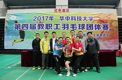 4月8日至9日,华中科技大学第四届教职工羽毛球团体赛在光谷体育馆举行,我院教工羽毛球队团结一心,奋力拼搏,克服种种困难,一路过关斩将,最终名列后勤集团、同济医院、产业集团和出版社实力超强的附属单位之后,获得第五名的好成绩,在全校所有院系代表队中排名最高,成绩的取得来之不易,与我院羽毛球爱好者长期坚持羽毛球锻炼,有一个良好的集体活动氛围分不开。