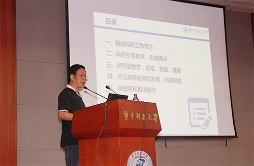 在报告中,何教授从自己的科研历程出发,总结科研工作如何引领教学工作,从而形成亮点,并分析研究型教学的特点,以及如何对其进行总结、发展和提高。何教授提出关注高等教育的发展、与时俱进的教学理念。